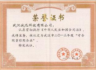 热烈庆祝武汉诚迅科技有限公司获得《守合同重信用企业》证书