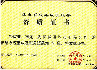热烈庆祝诚迅科技获得信息系统集成资质叁级证书!